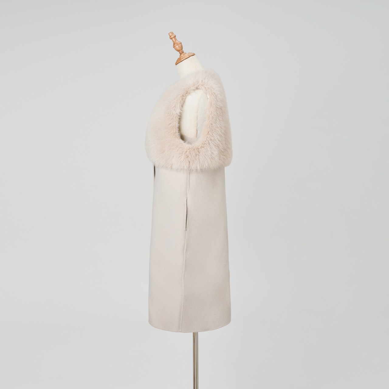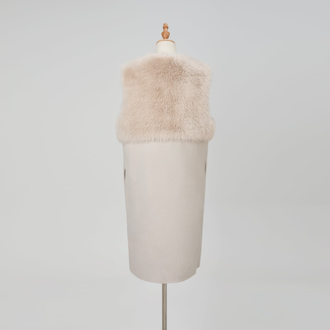 肌触りのよい上質なフェイクファーと、しっとりとしたウール地のコンビネーション。
