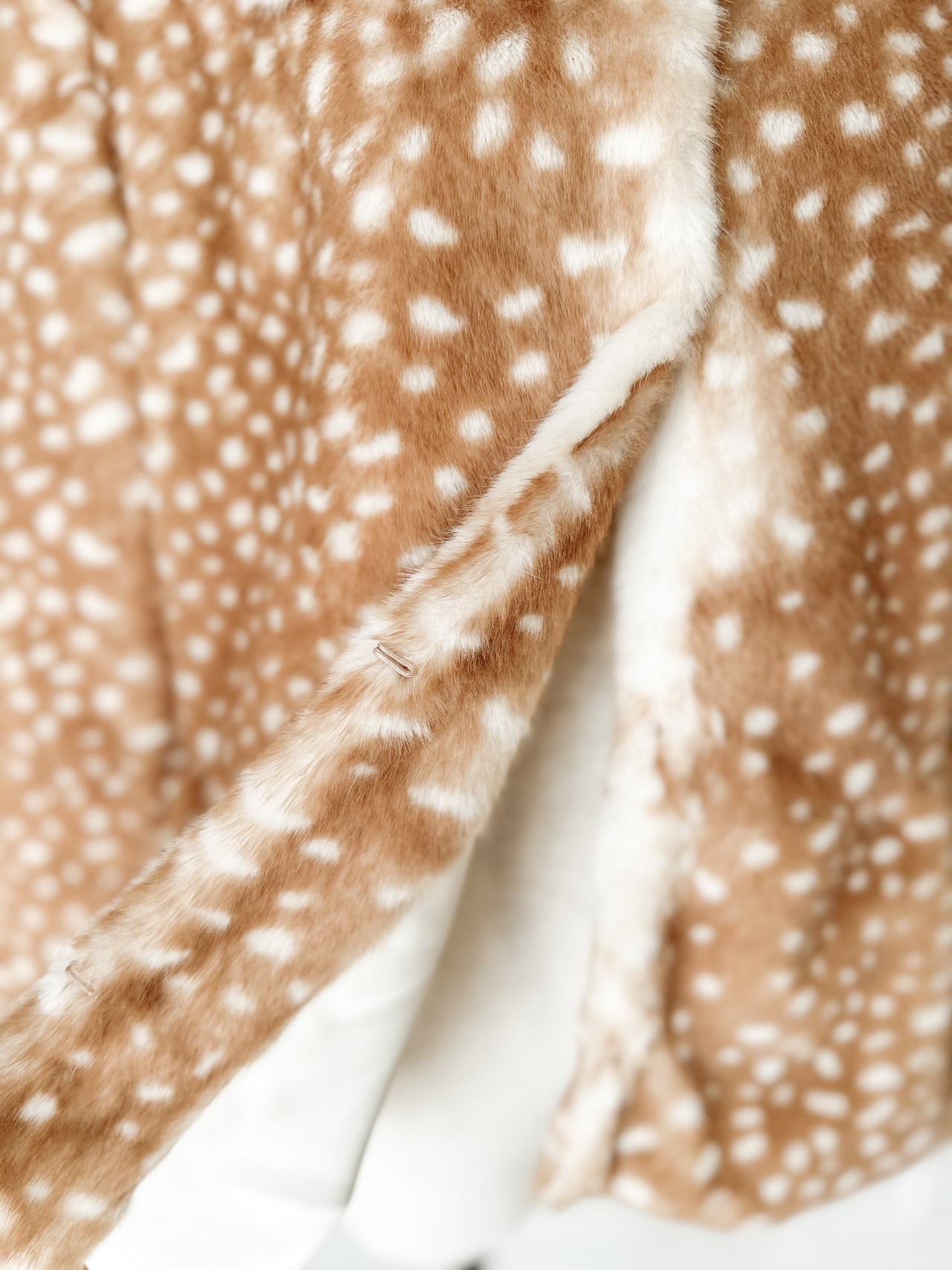 バンビ柄の可愛らしさと、フェイクファーの柔らかさを絶妙にミックス。
