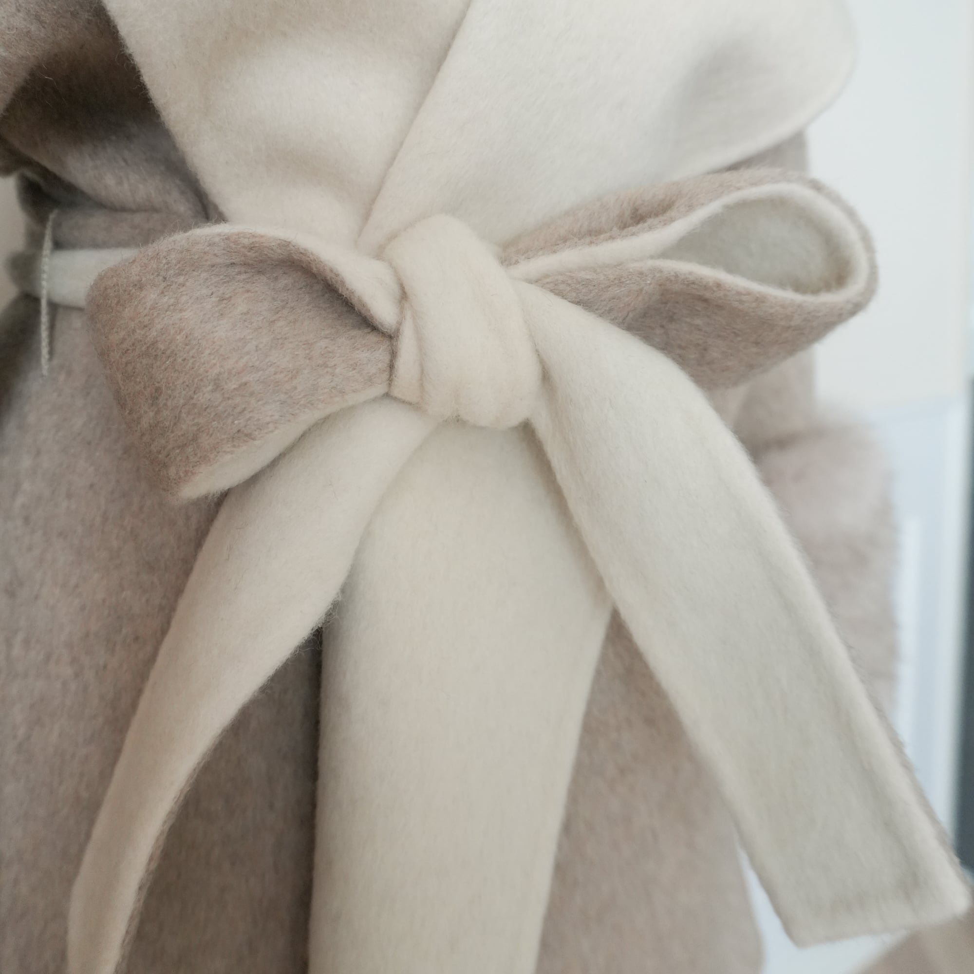 静かな佇まいに華やぎを添える、贅沢なウール100%のミドルコートです。
