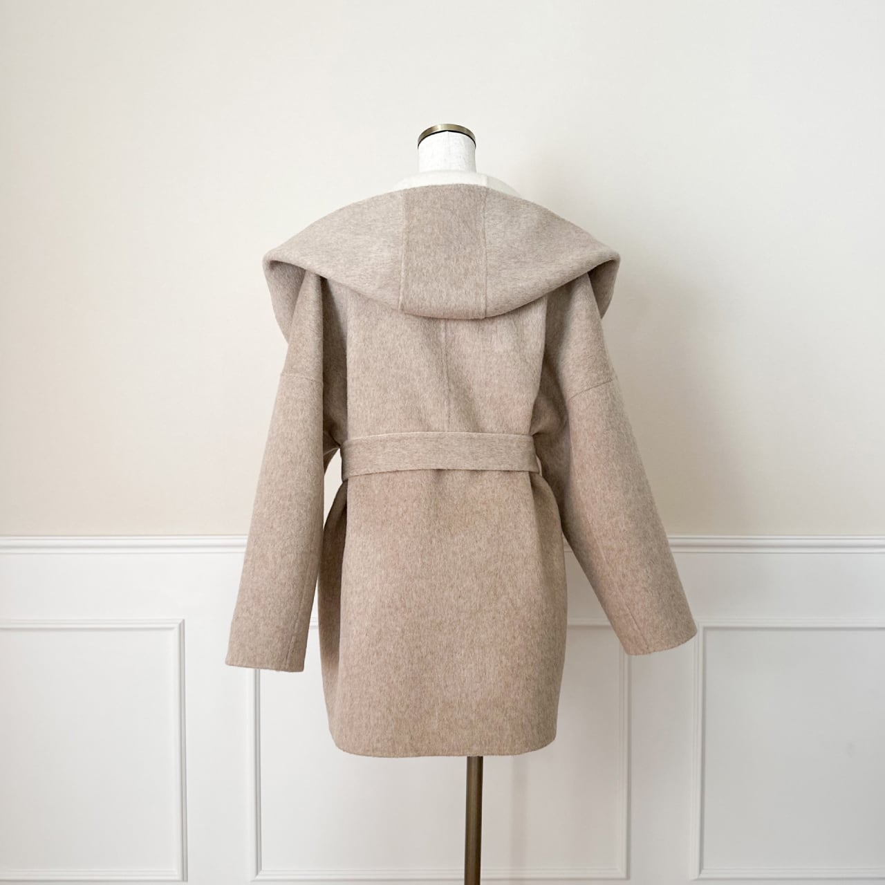 大きめのフードは、横顔や後ろ姿までも優雅に演出。