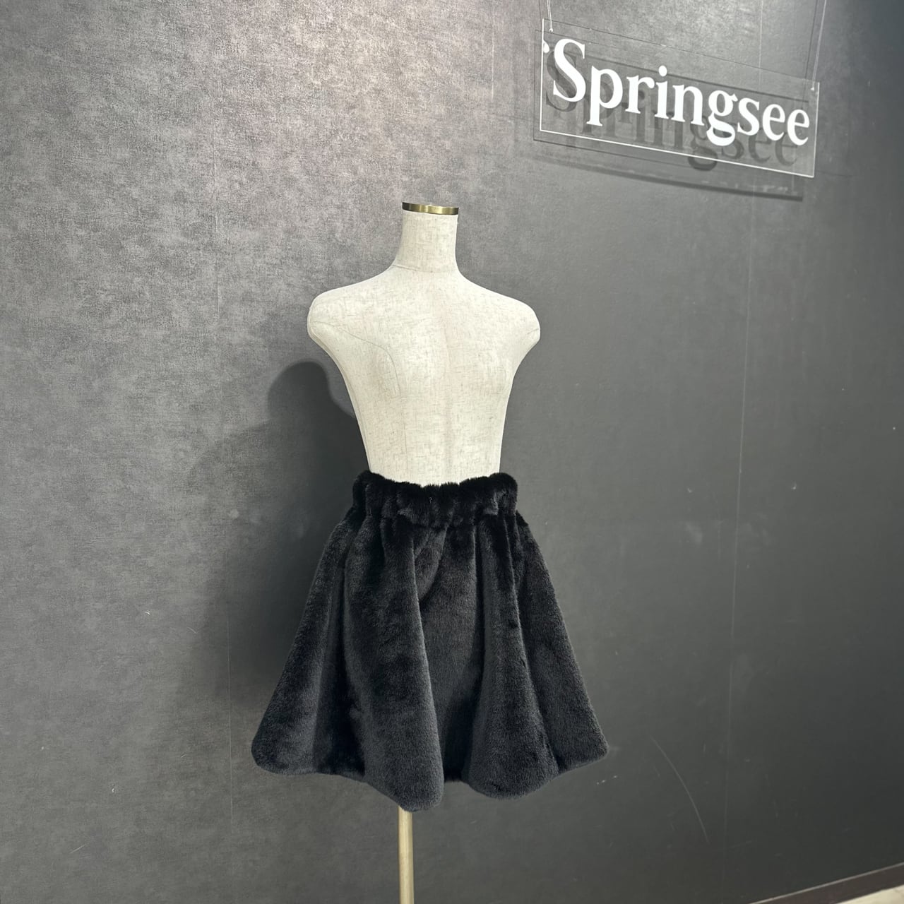 ふんわりとした光沢と立体感が美しいフェイクファーのフレアスカートが登場。