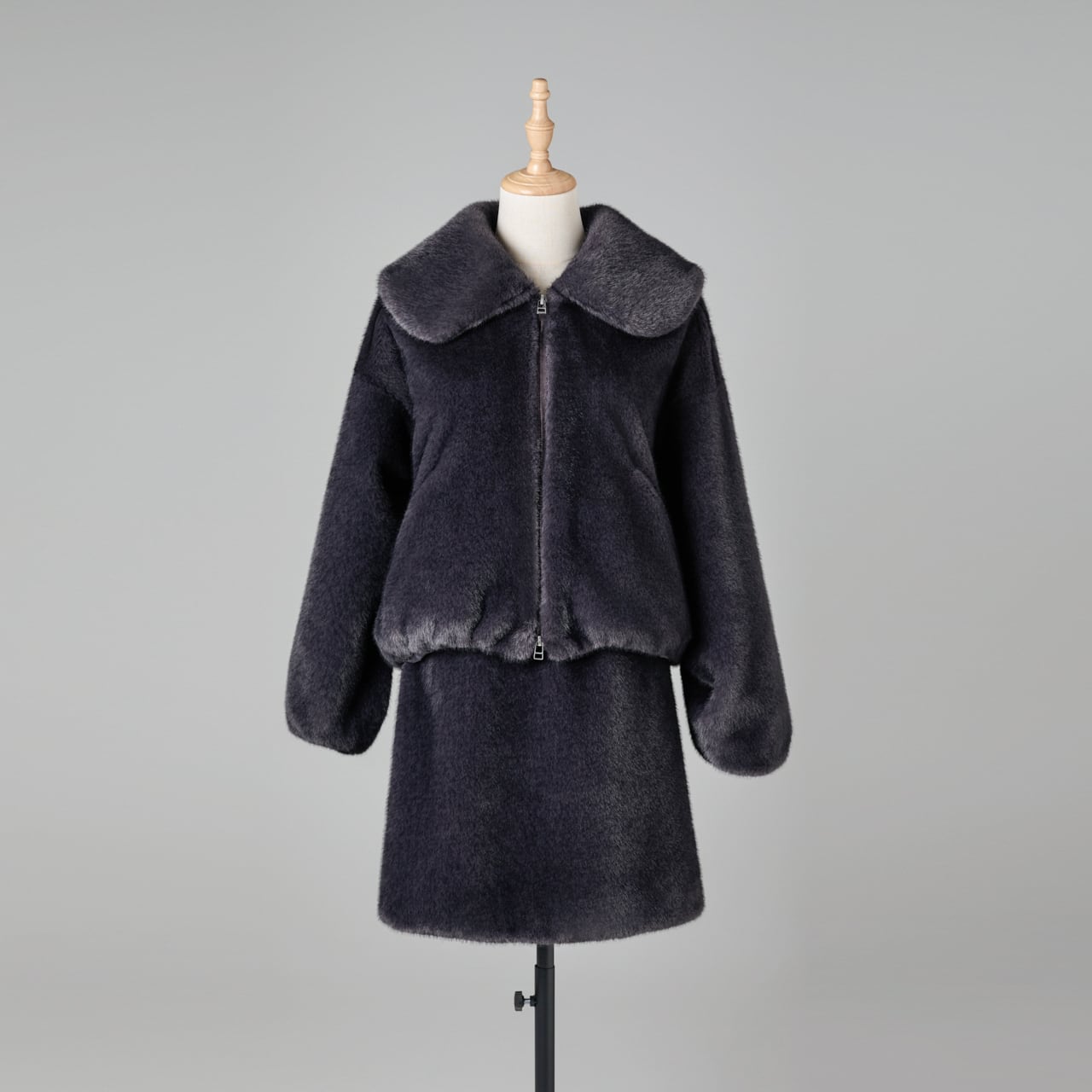 一枚で装いに上品な温もりを添える、フェイクミンクファースカート。
