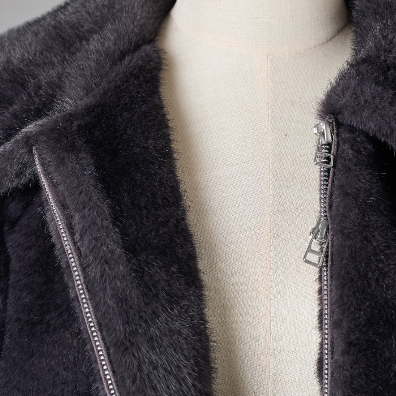 本物のミンクを思わせるリュクスな質感を纏った、フェイクミンクショートジャケットとジレの2点セット。