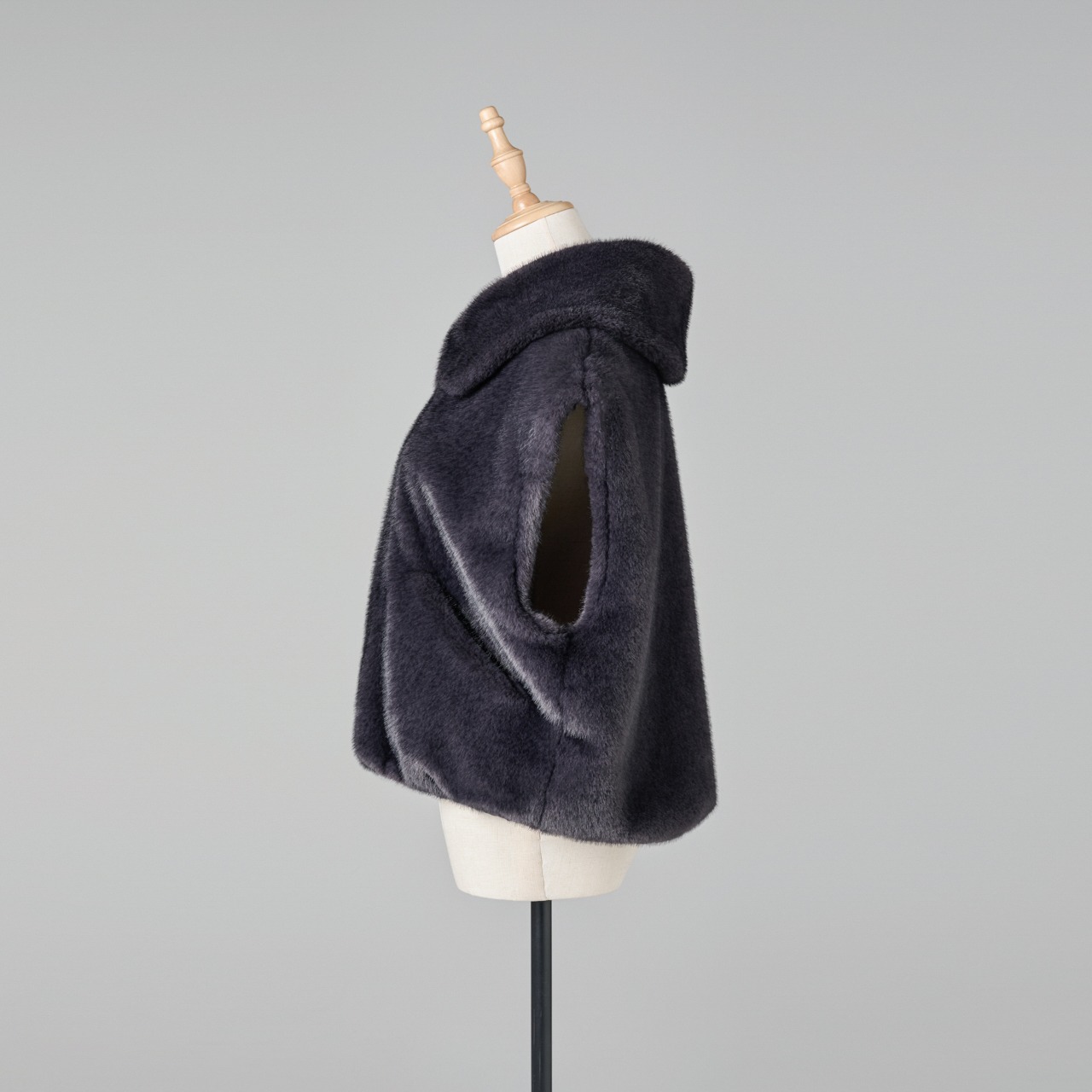 本物のミンクを思わせるリュクスな質感を纏った、フェイクミンク ショートジレとスカートの2点セット。