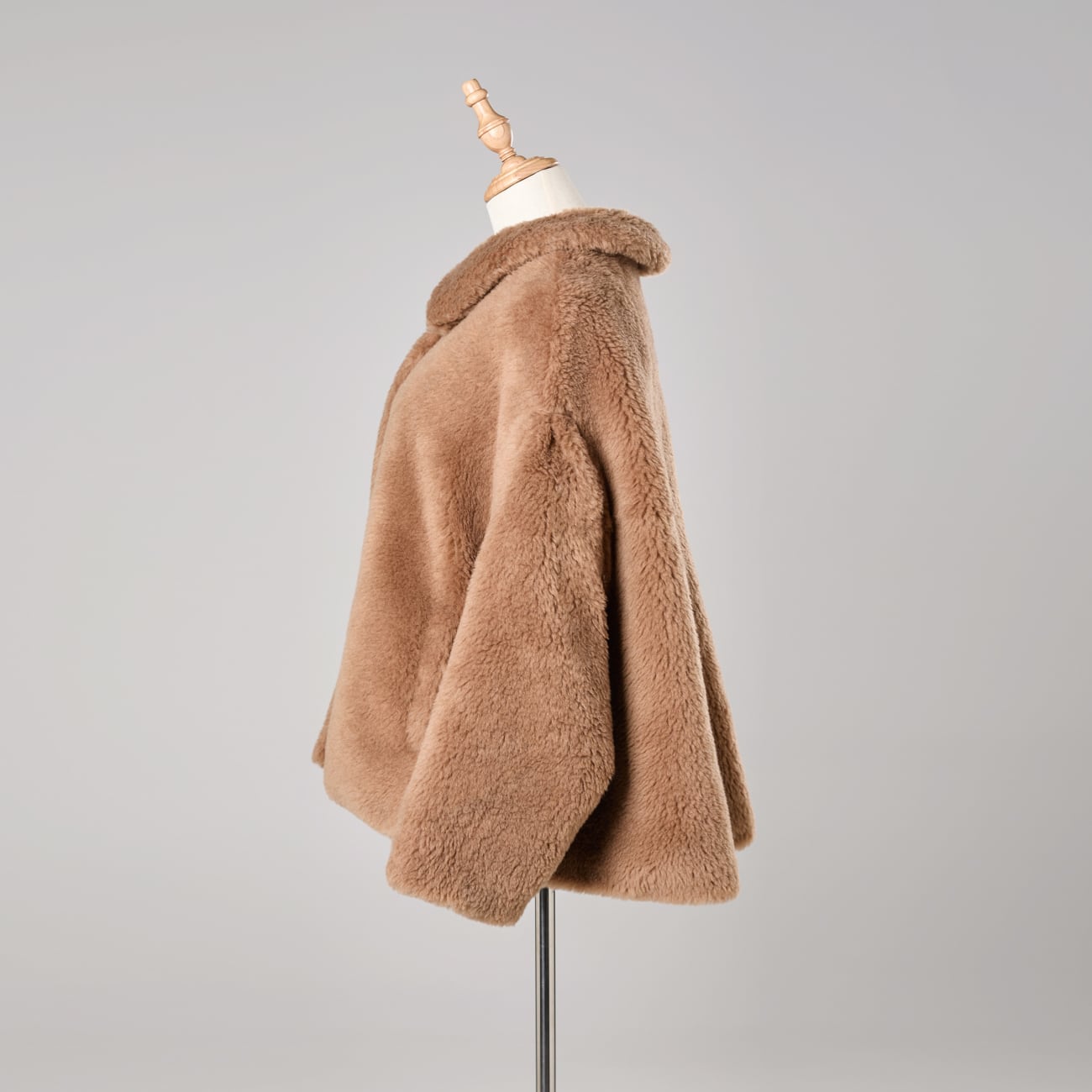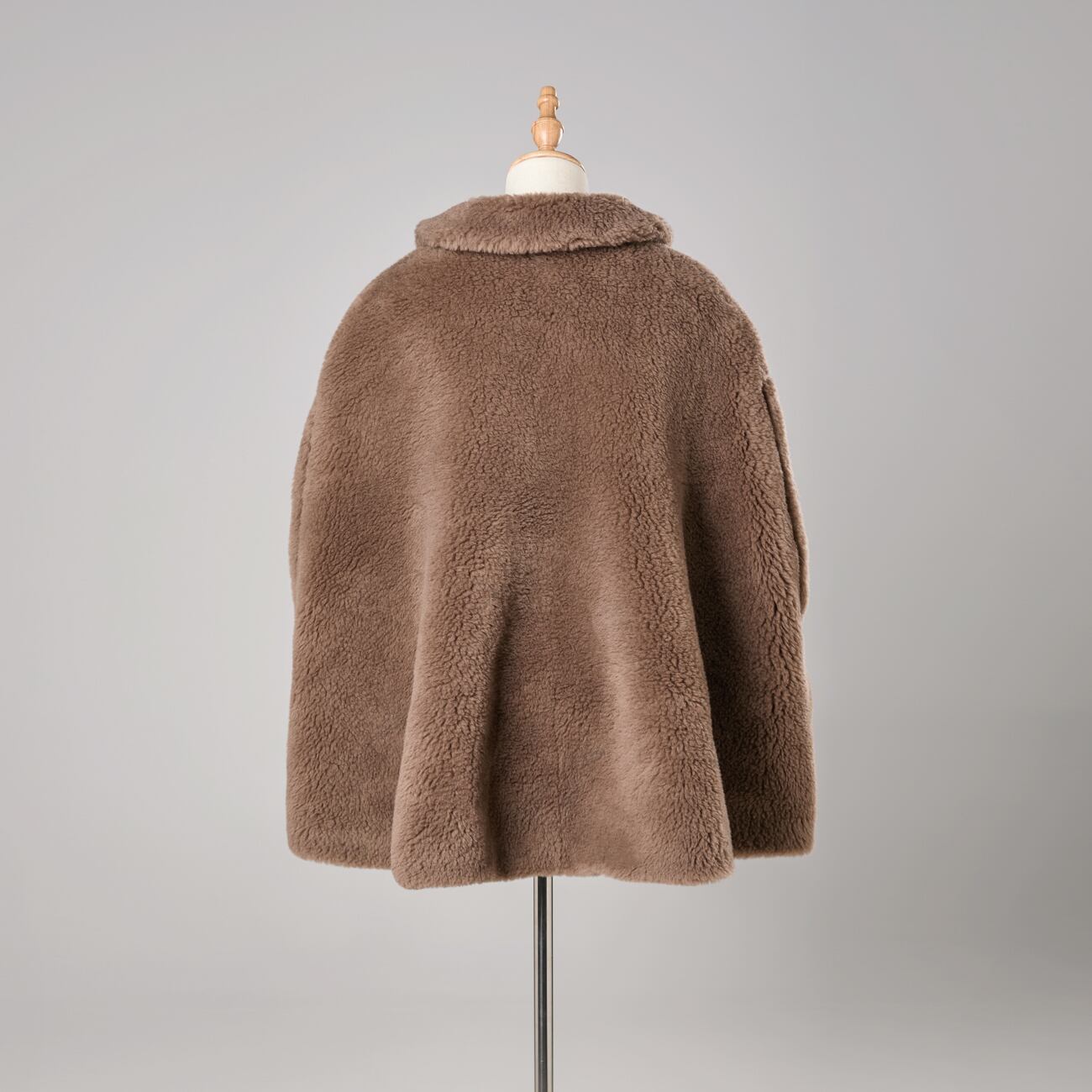 ケープとして着用した際は、肩から自然に落ちるシルエットが美しく、