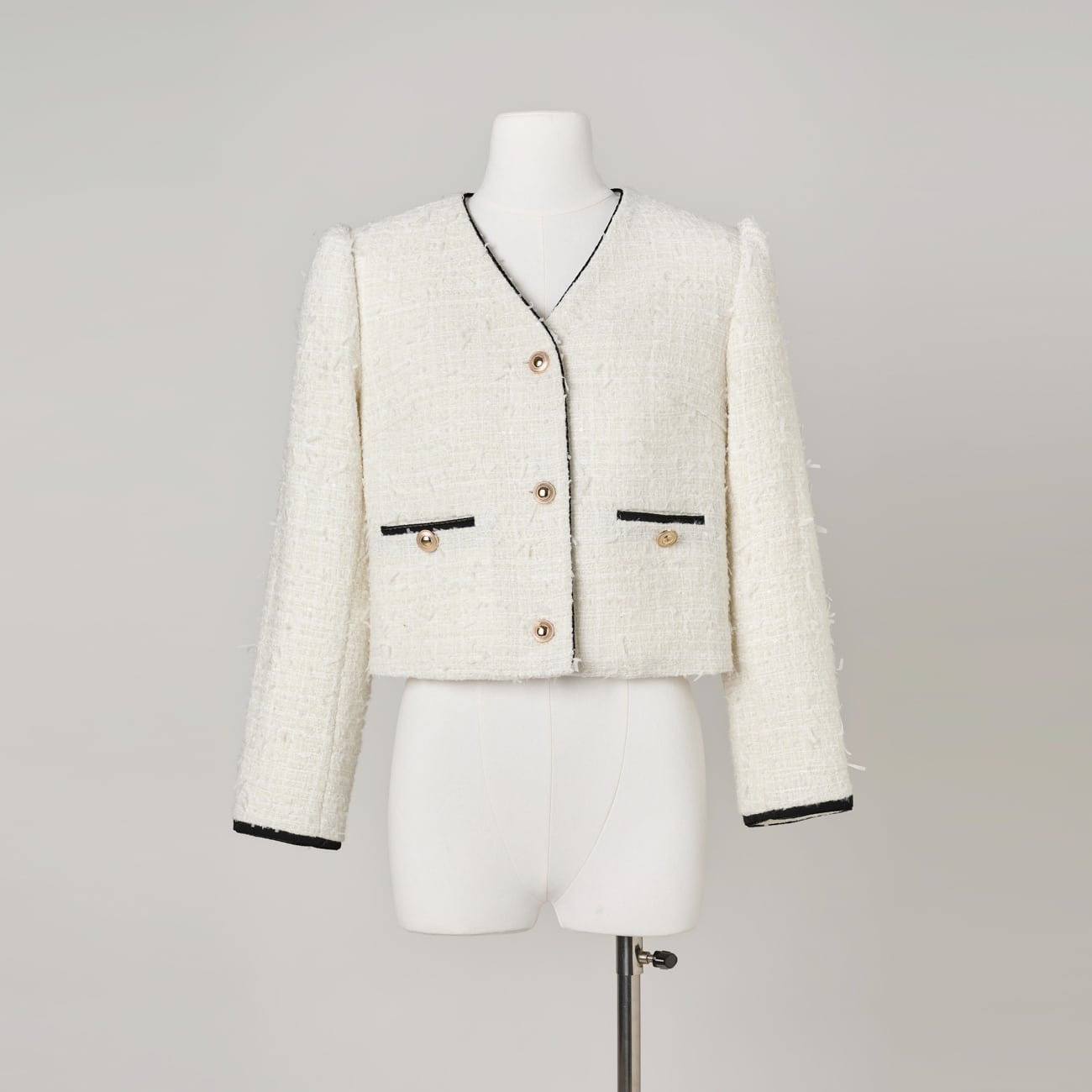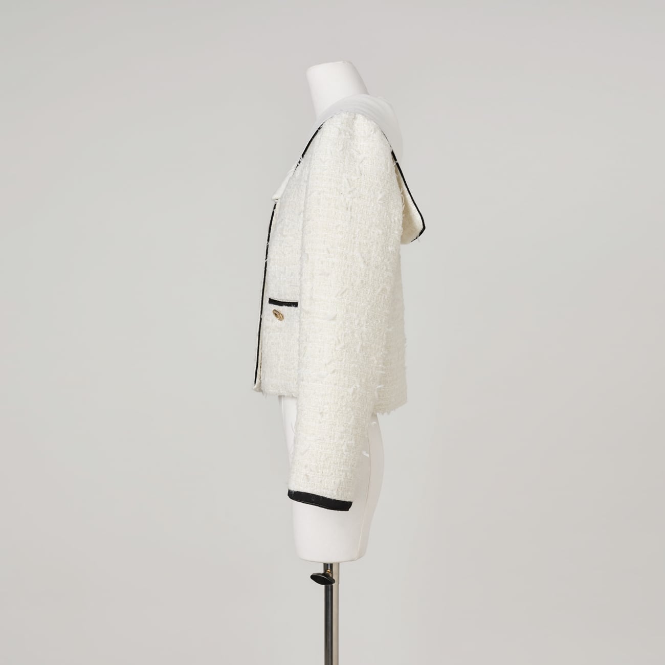 ネイビーは知的に、アイボリーは柔らかく。どちらも甘さに寄りすぎない、大人の女性にふさわしい佇まい。日常からきちんとした場面まで、着回し力と品格を兼ね備えた3Wayツイードジャケットです。