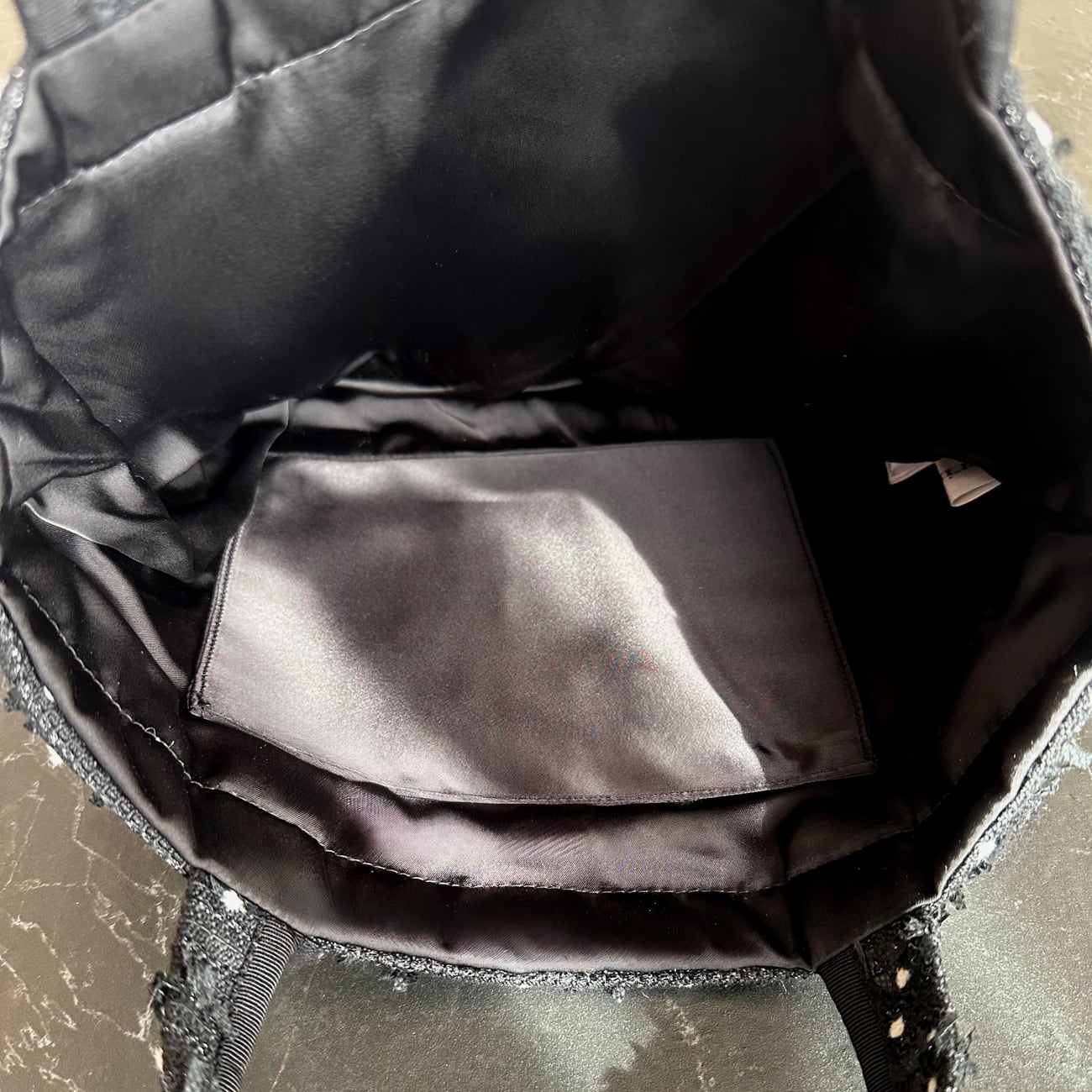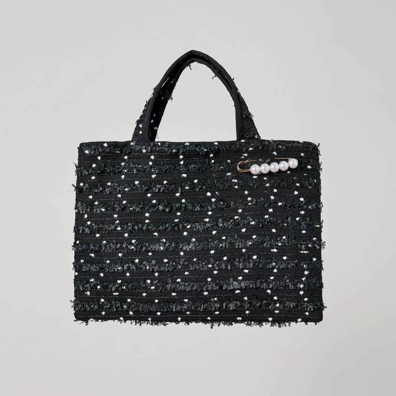 華やかさと実用性を兼ね備えた、大人のためのツイードトートバッグです。