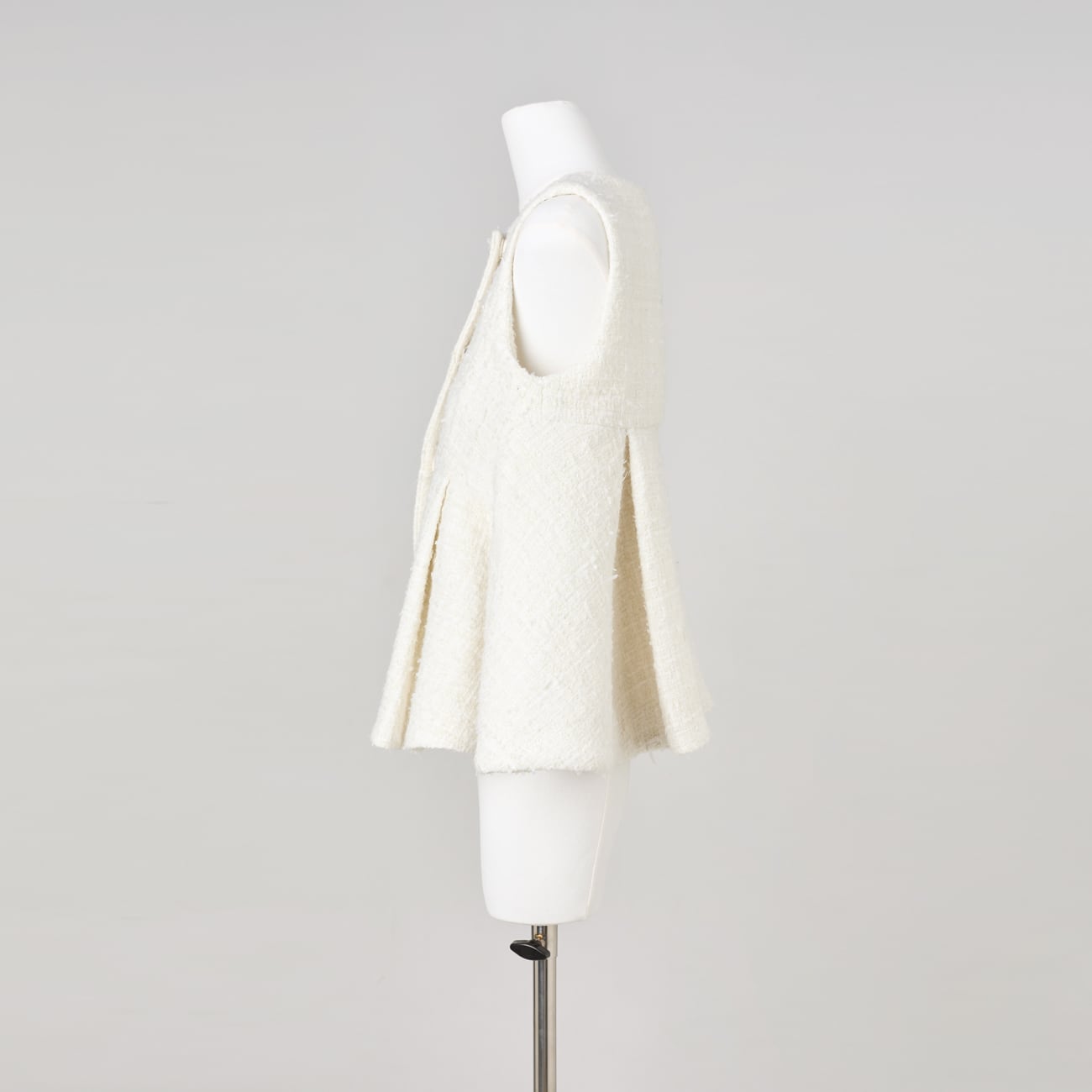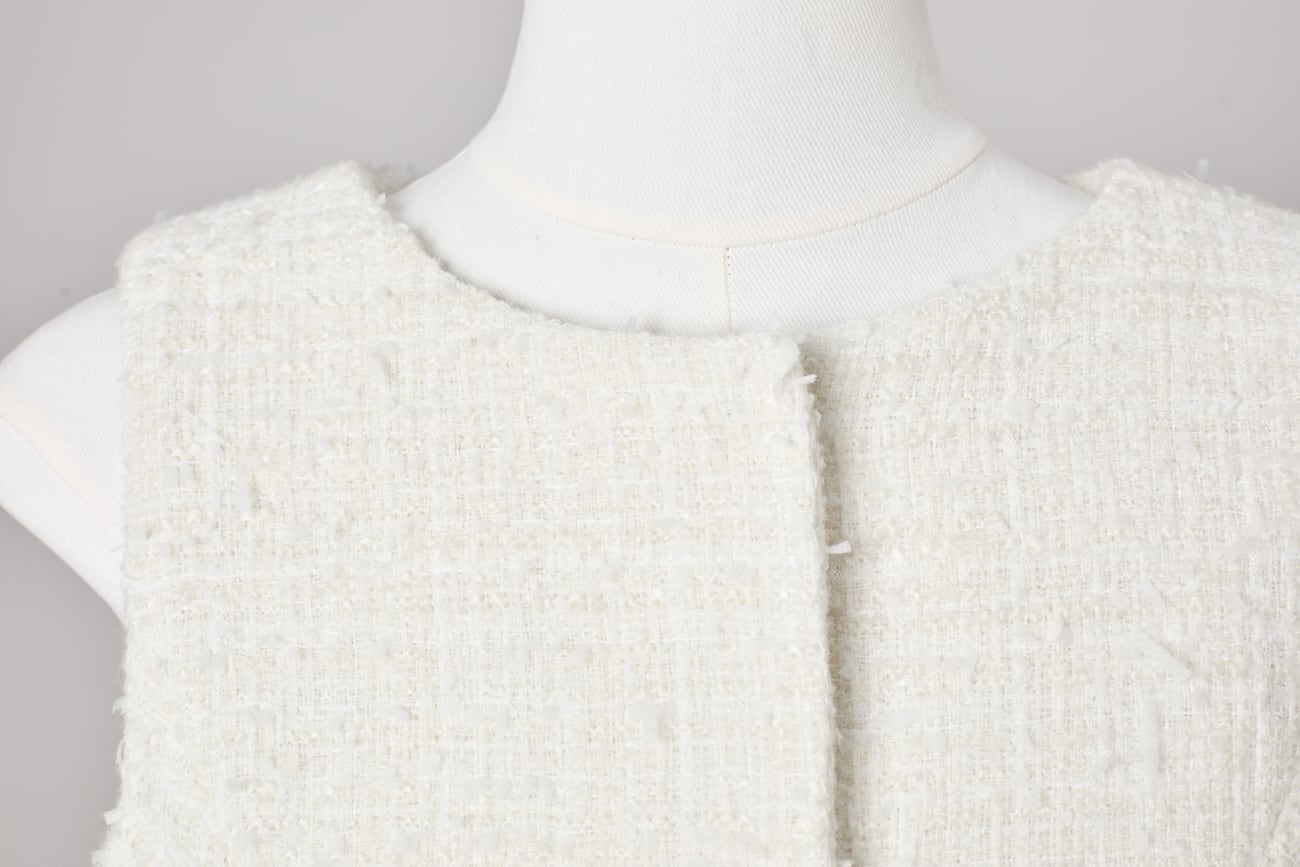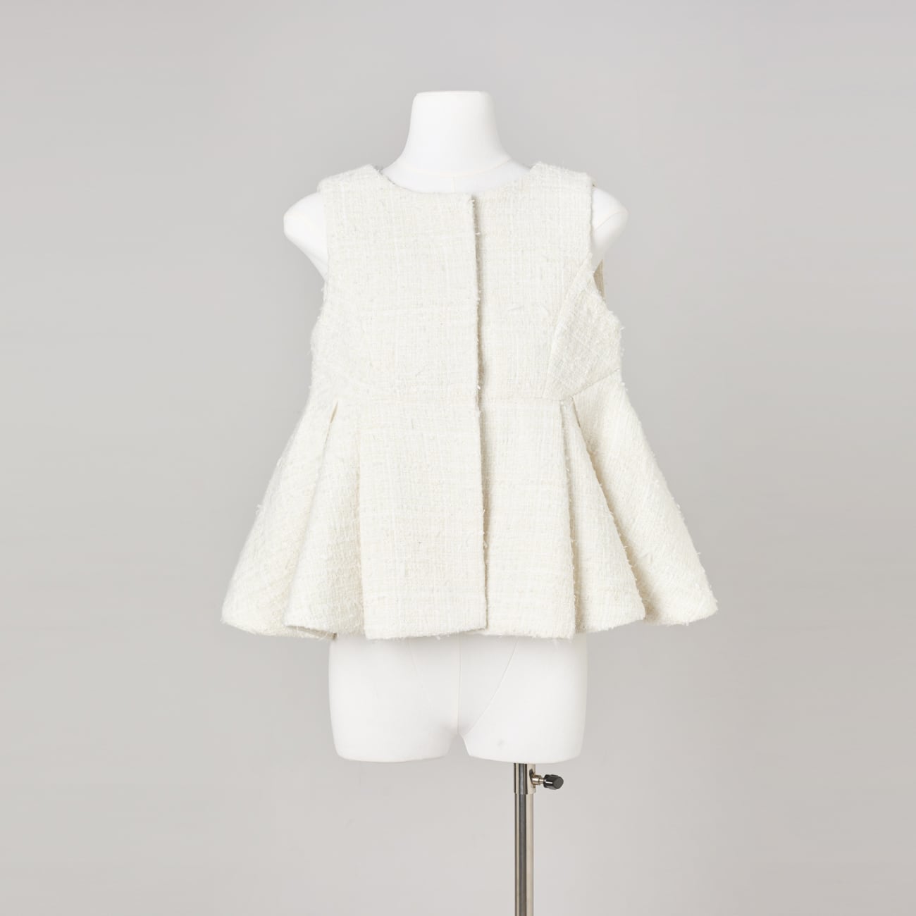 可憐さだけで終わらない、構築美を備えたツイードペプラムジレです。