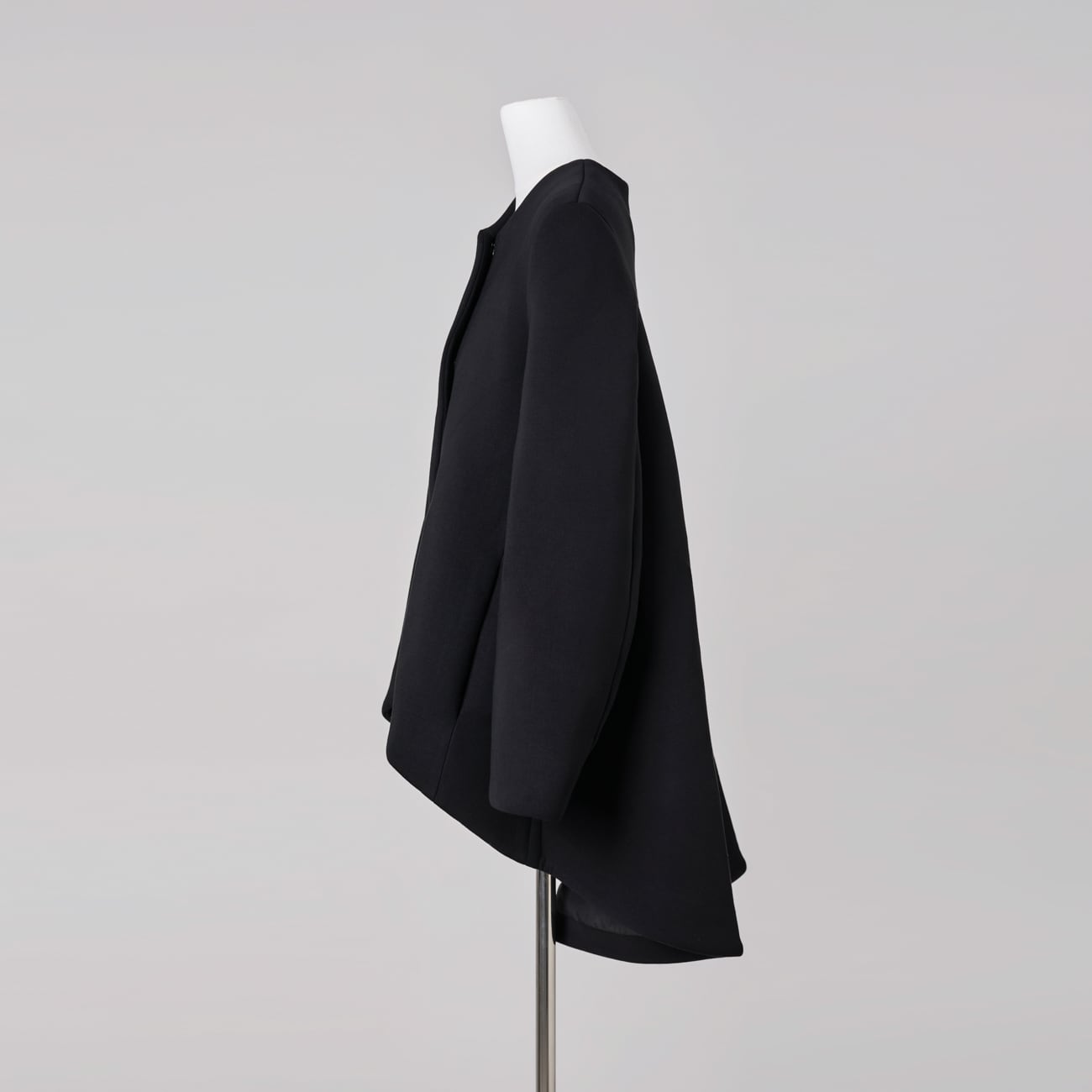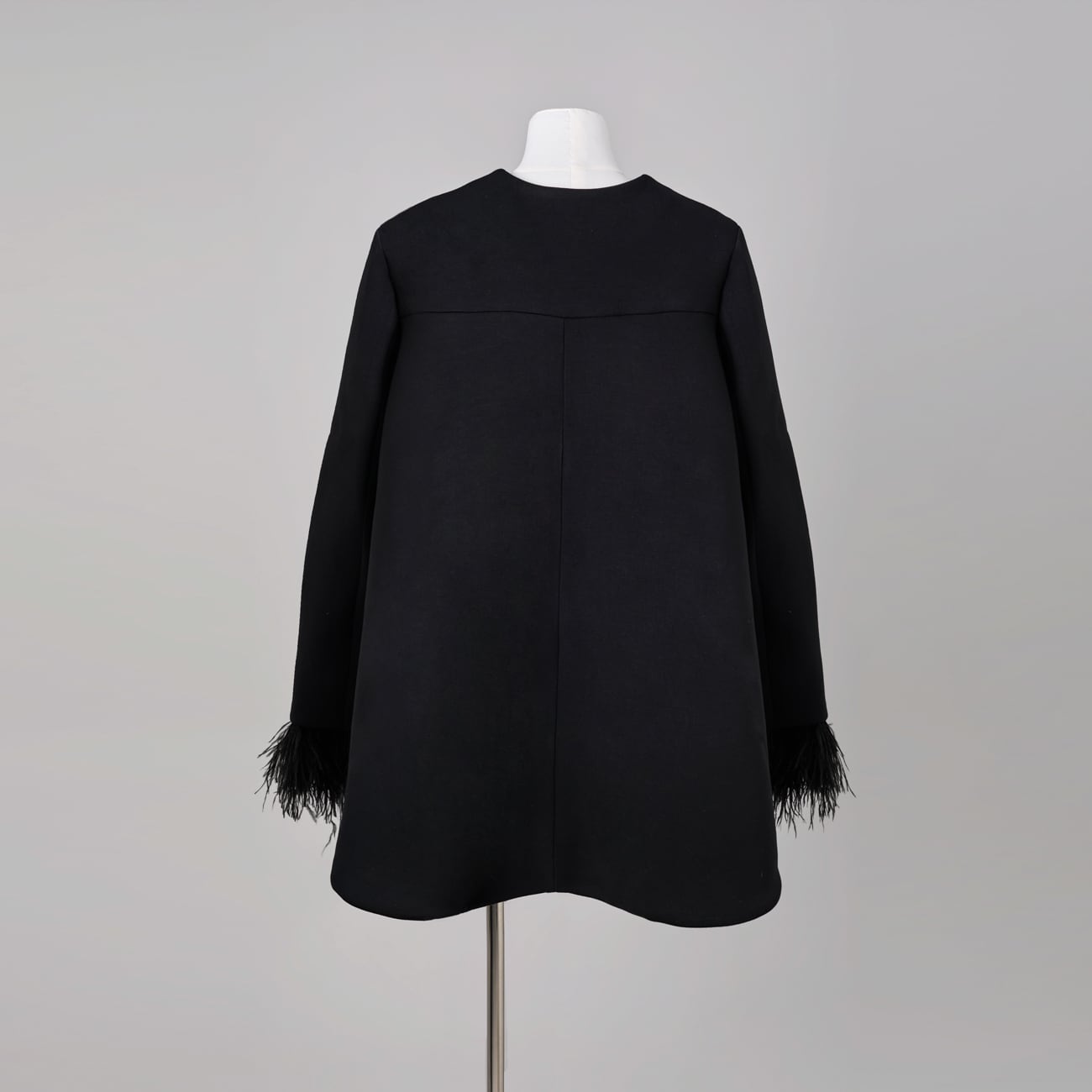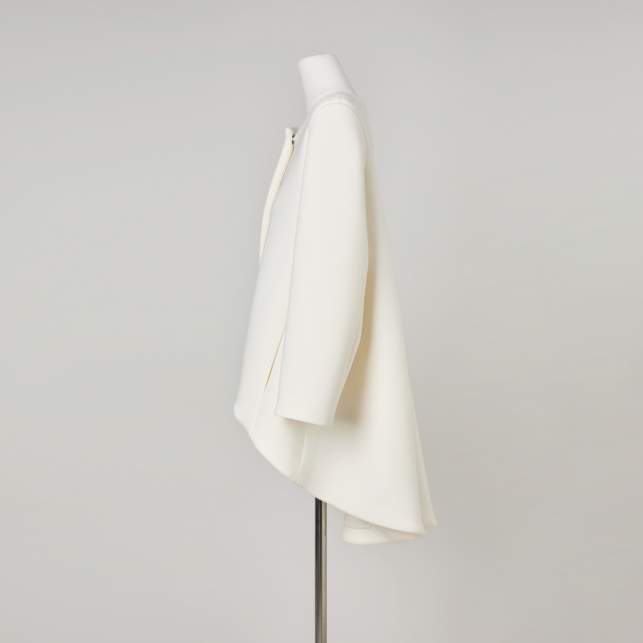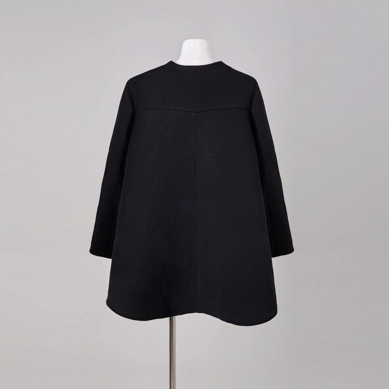 しなやかさの中に芯を持つ生地が、後ろ下がりのAラインシルエットを美しく保ちます。