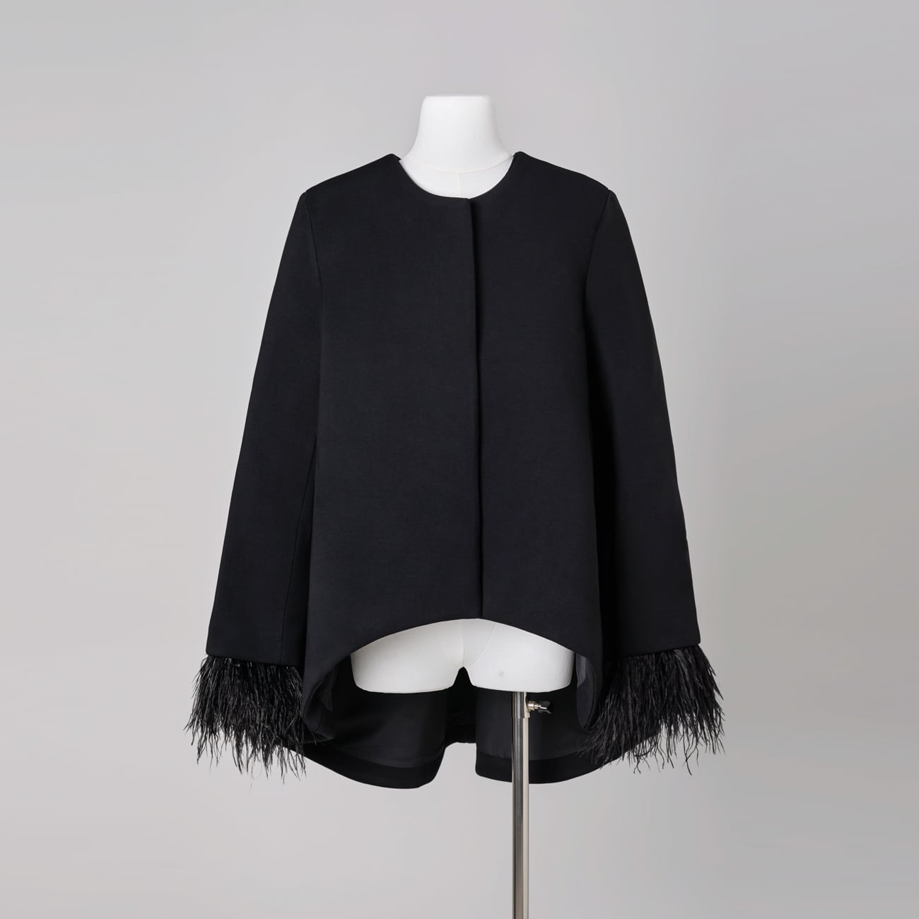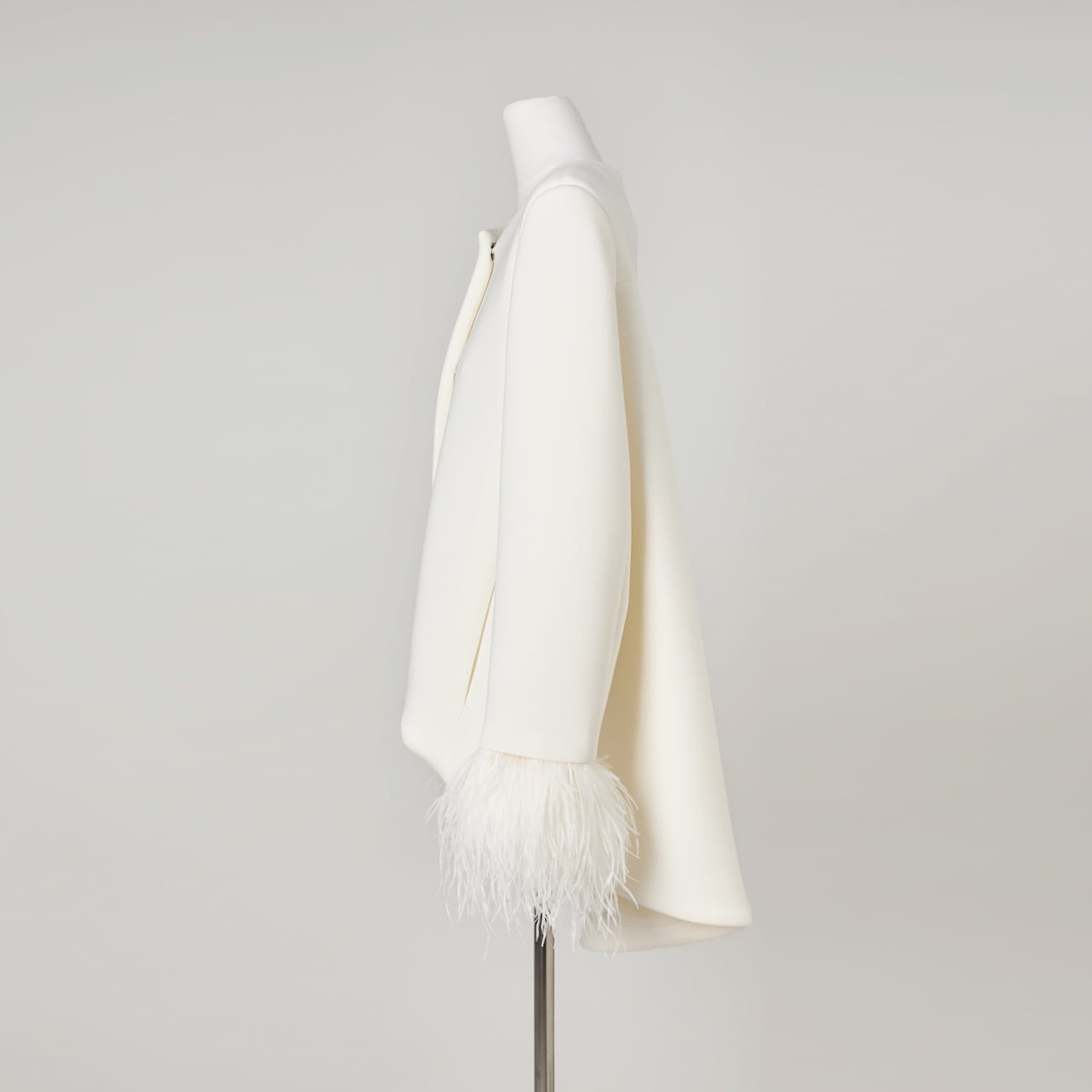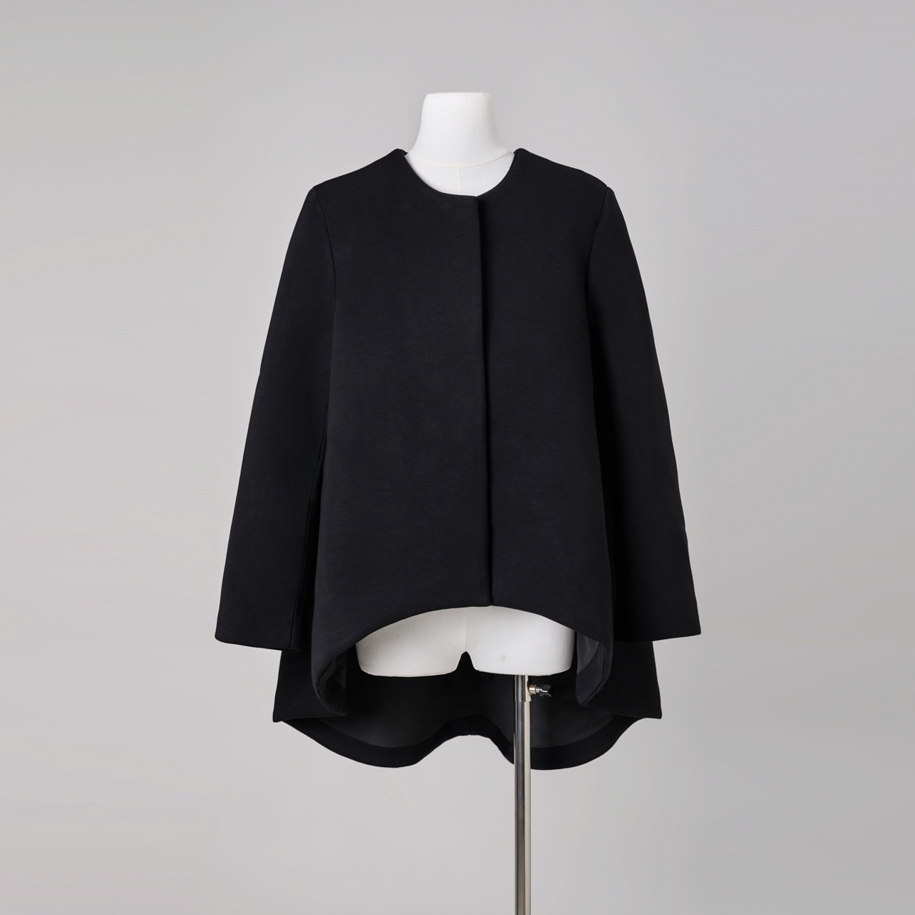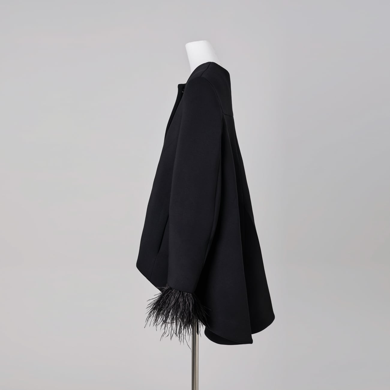 しなやかさの中に芯を持つ生地が、後ろ下がりのAラインシルエットを美しく保ちます。