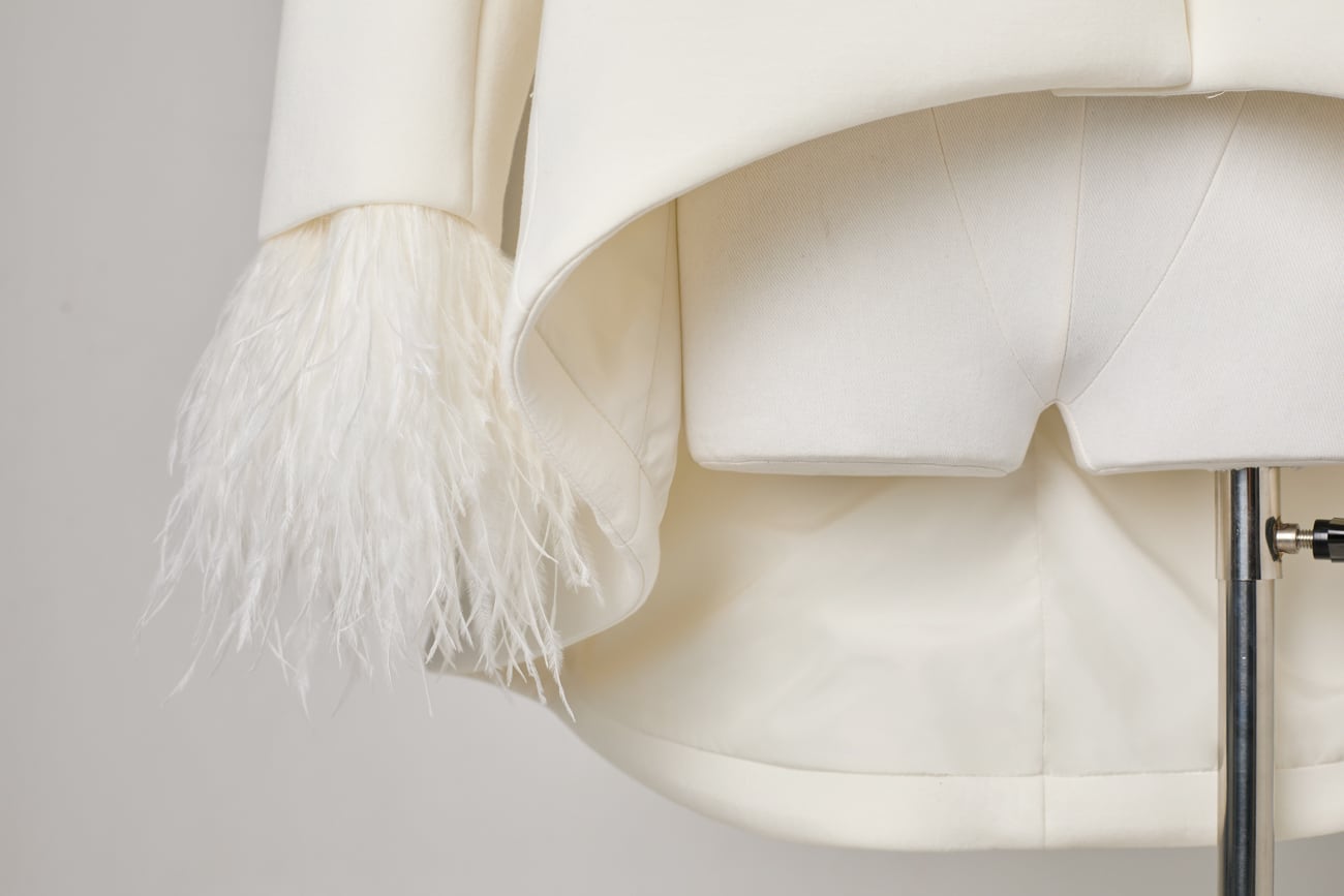 袖口に装着できるフェザーディテール。