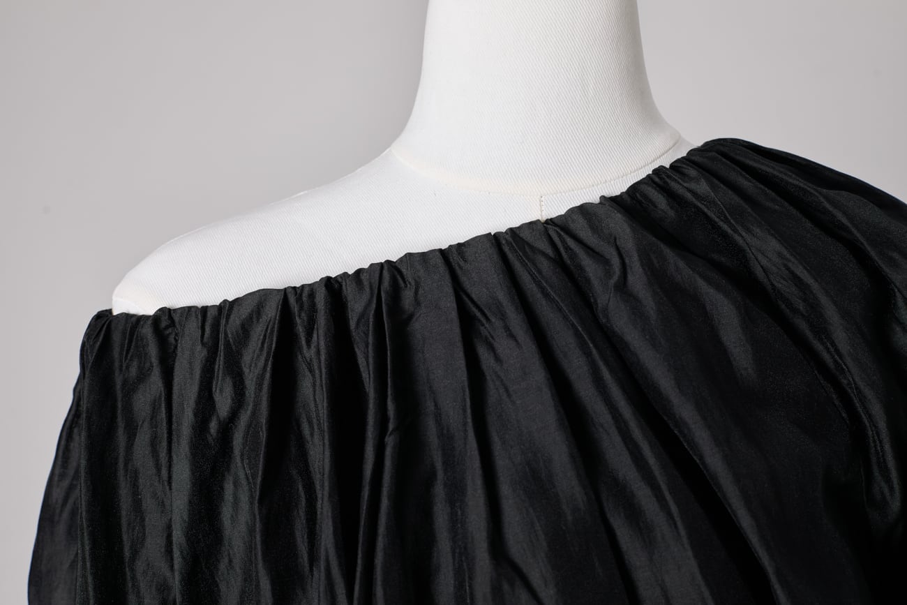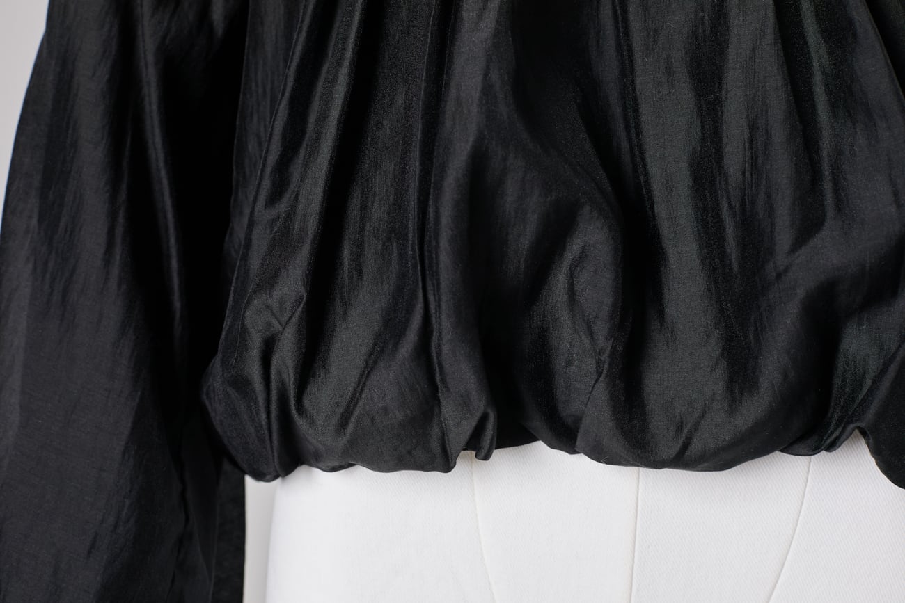 繊細な光沢と、空気をはらむような軽やかさが印象的なギャザーブラウス。