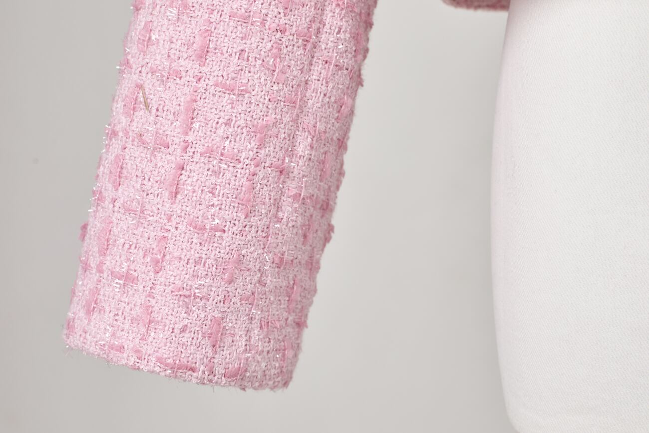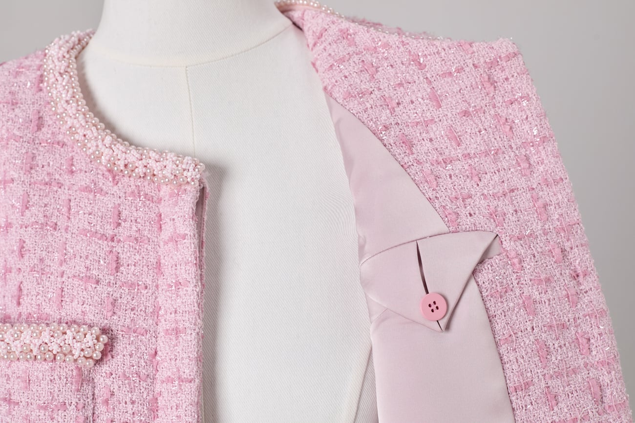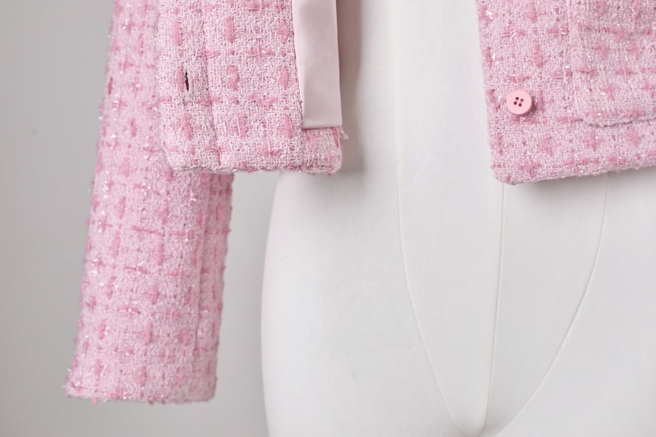 素材には、奥行きのある表情を持つツイード生地を使用。程よい厚みと密度を備えた立体的な編地が光を受けて柔らかく表情を変え、写真に残るシーンでも美しく映える質感に。裏地付きで袖通しも滑らかです。