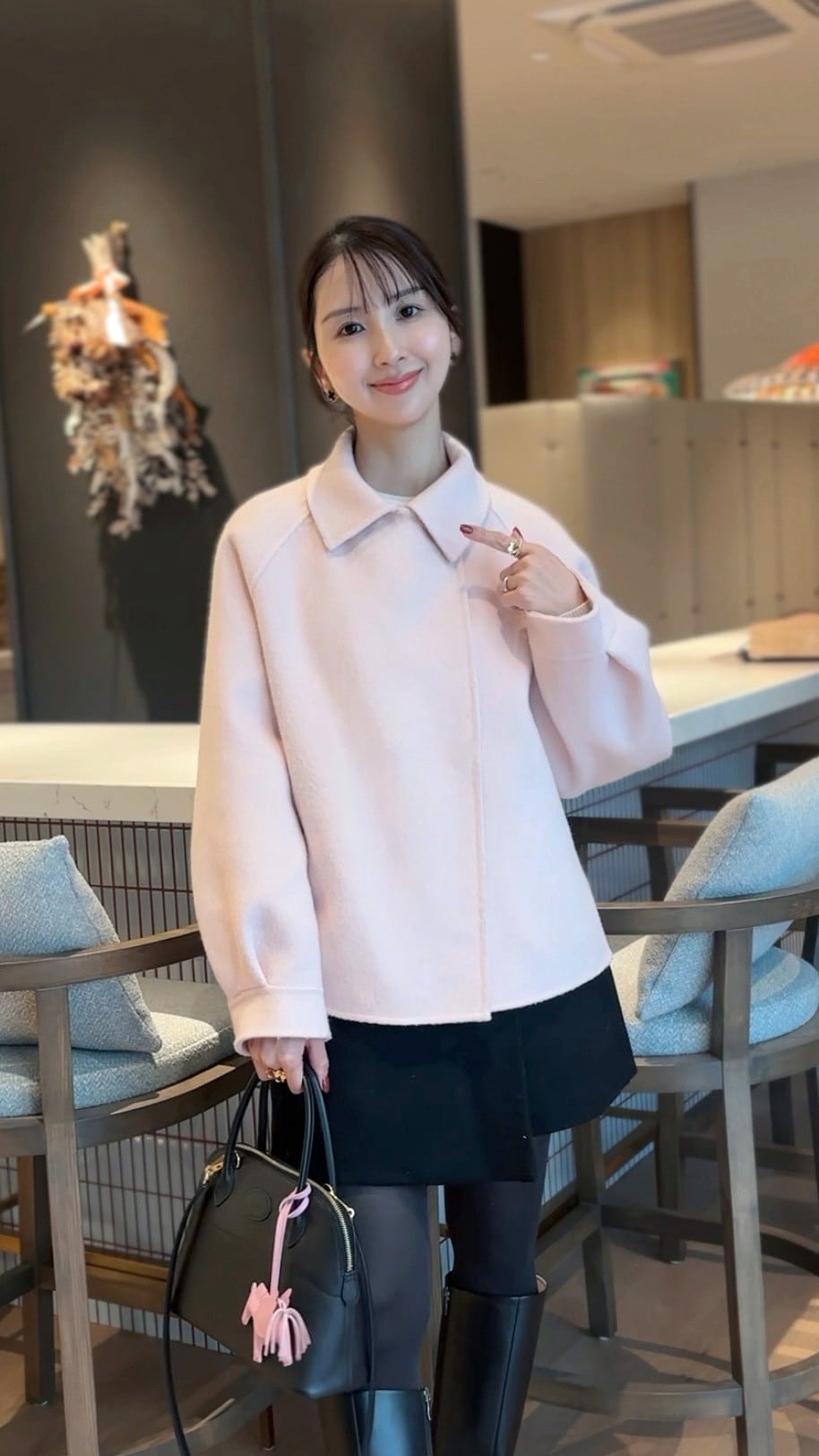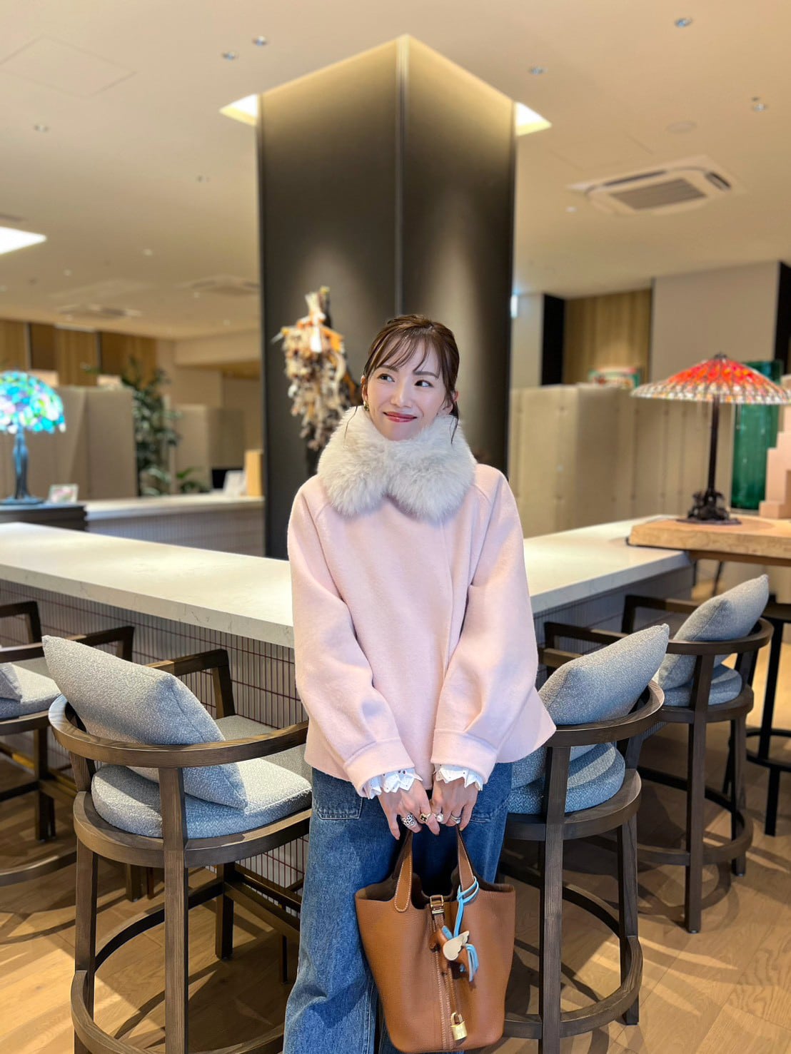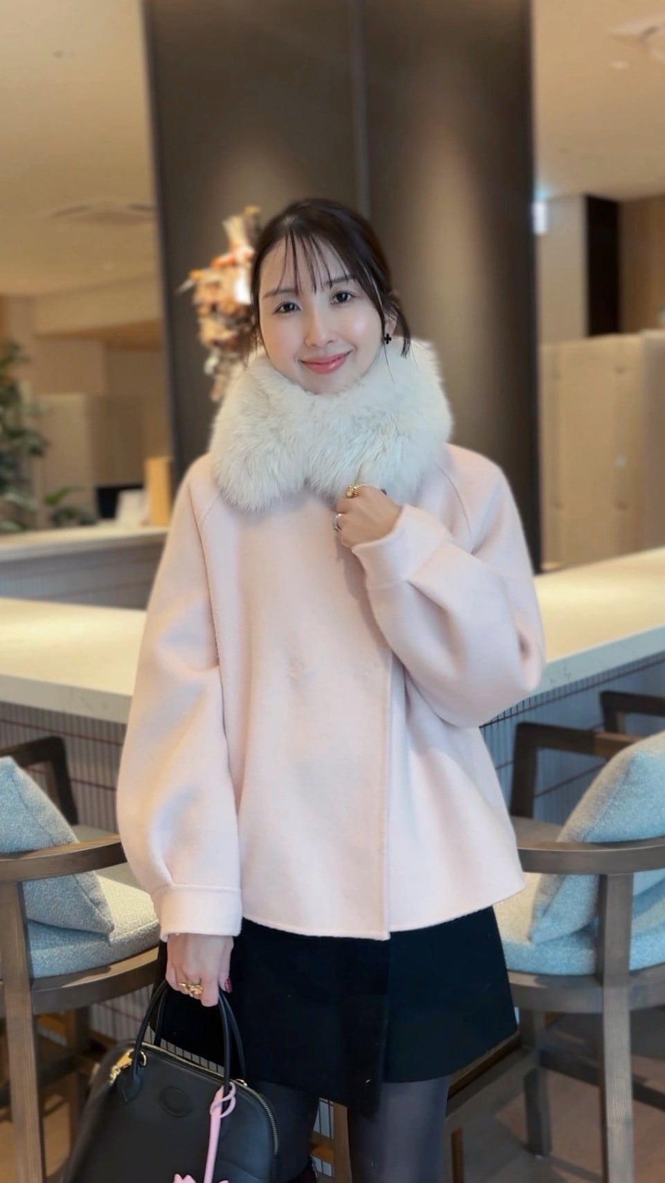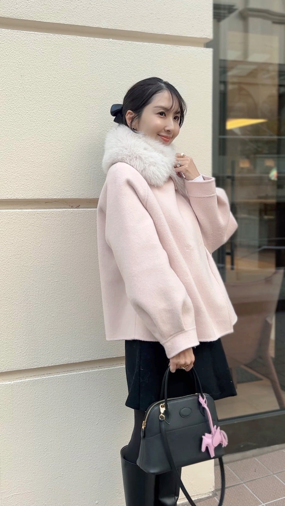ウール100%のダブルブレストとフォックスファーでフェミニンに防寒